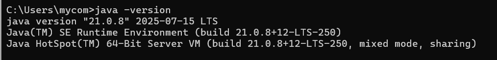 다시 커맨드 창(윈도우키+R, cmd 엔터)을 누른 후 java -version 엔터 했을 때 버전이 높아졌으면 성공!